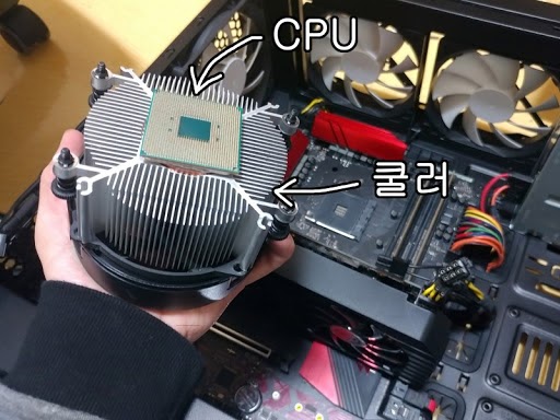 게다가 가이드도 없어서, 쿨러와 CPU 사이에 있는 써멀구리스가 딱딱하게 굳으면, CPU가 쿨러에
