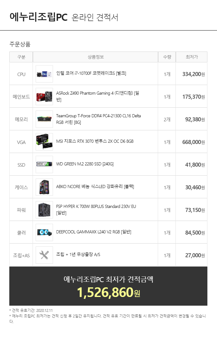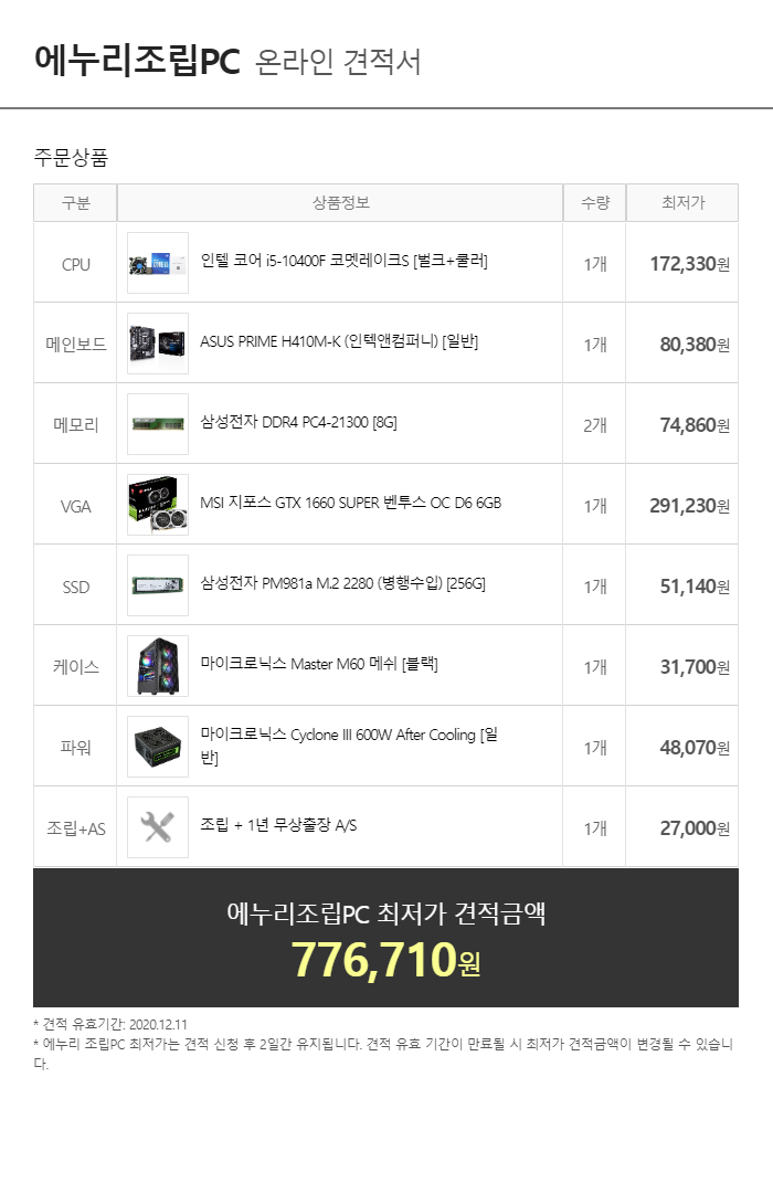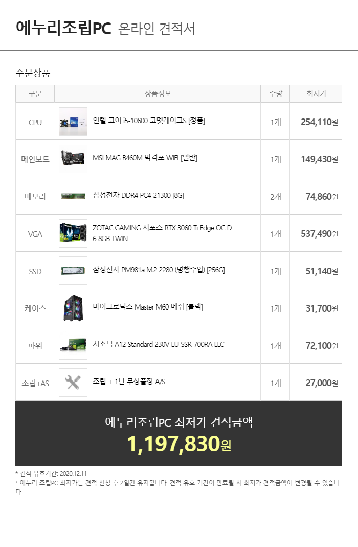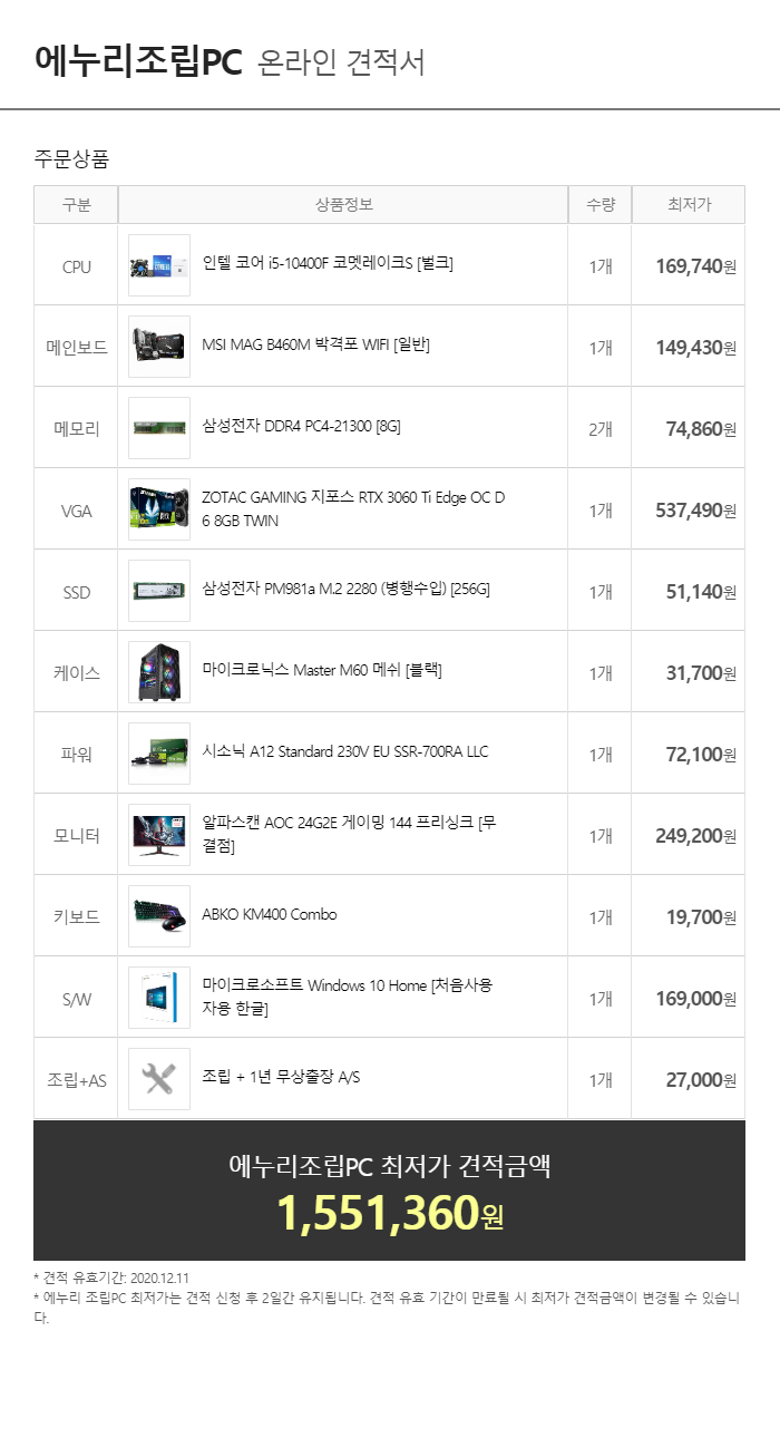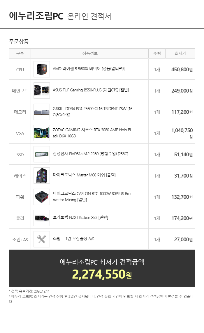 2020 12월 월간견적 : 미친가격
